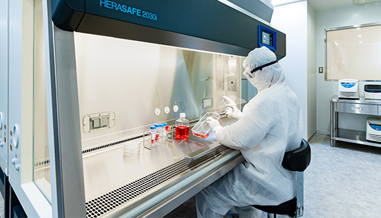 空気の清浄度が高く保たれているクリーンルームを完備しており、経験豊富な培養士がプロセスを厳密に管理・監督した上で細胞培養・加工を行います。